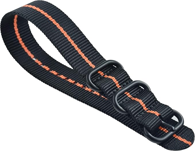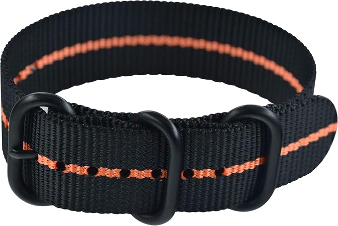 22mm 黒/オレンジ 厚いナイロン タイプ 腕時計ベルト替えバンド マット仕上げのバックル 3リング