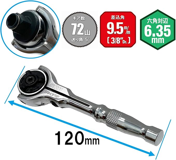 SK11(エスケー11) スイベルラチェットハンドル 72山 差込角9.5mm/六角対辺6.35mm SRH3FRB