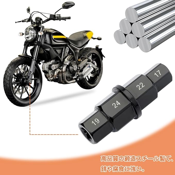 六角アクスルツール 六角アクスルモーターサイクルツール オートバイ 六角 車軸 ツール 17mm 19mm 22mm 24mm スピンドル分解六角レンチツール バイク用(1個入り)ブラック