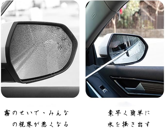ZUNNY HJERBOF 車 水切りワイパー 車用サイドミラーワイパー 携帯用伸縮式ロングポール ミラーワイパー 巻き取り式ウイングミラーワイパークリーナー(ブラック)