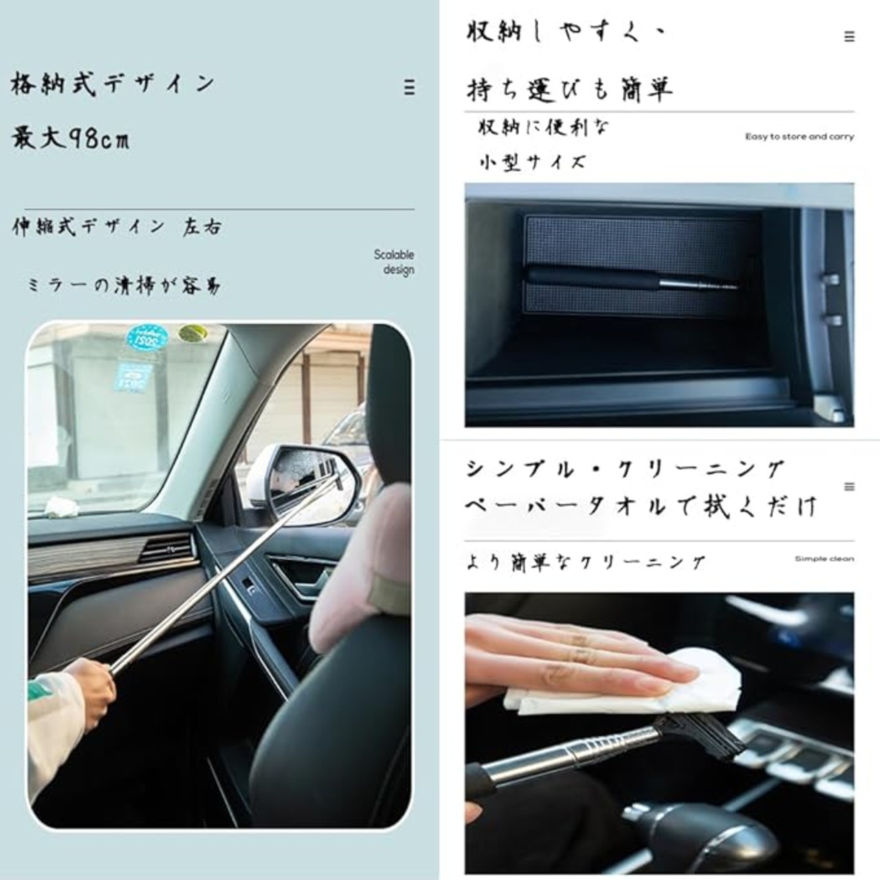[ユニークなデザイン]引き込み式のデザイン、38インチ/98cmまでの車のバックミラーブラシ。運転席にいるときでも、反対側のバックミラーから水を簡単にこすり落とすことができます。伸縮式自動車バックミラーワイパー汚れ除去水霧除去器ポータブルヘラ付き自動車家庭用ガラス窓クリーナーツール自動車アクセサリー。