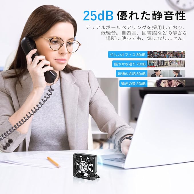 【安全設計】usbファン 4cmは金属製フレーム搭載、稼働中ケガ防止のため安全設計されます。指が入らず、持ちやすくなり、ケーブルなど異物の侵入も防止できます。USBポートに挿したら勝手に動作するようになっています。超静音設計で、自習室、図書館などの静かな場所に使っても、気になりません。