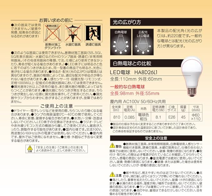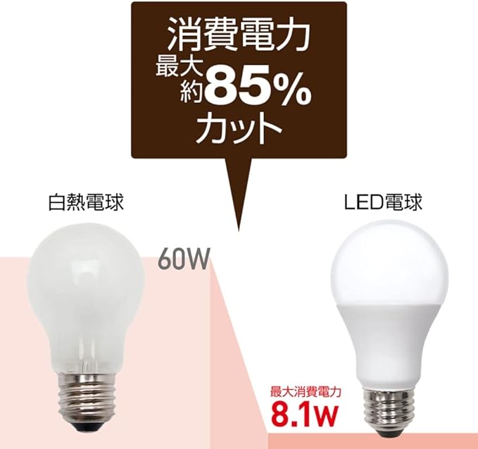 調光機能のついた照明器具に使用可能。白熱電球より低消費電力。