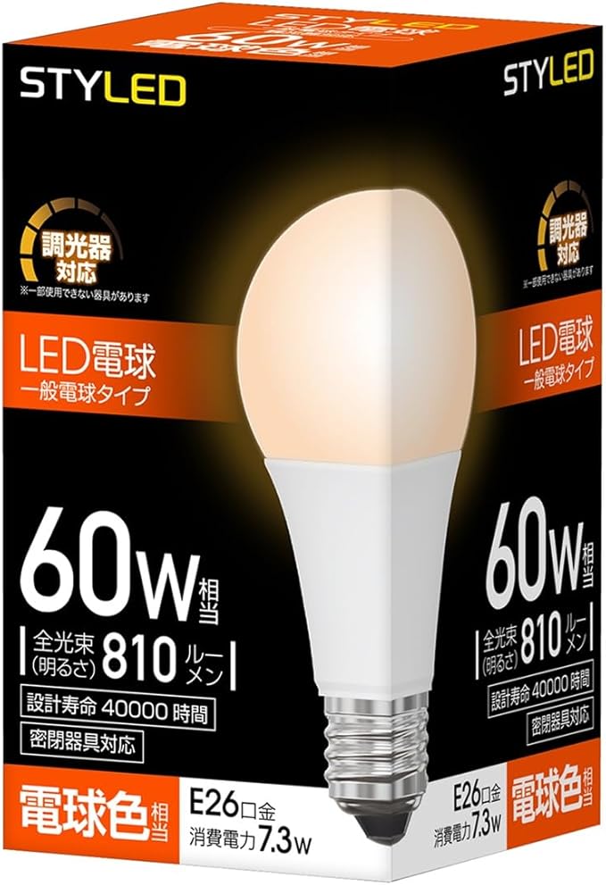 スタイルド LED電球 調光器対応 一般電球タイプ 口金直径26mm 60W形相当 電球色 広配光タイプ 密閉器具対応 HA8D26L1