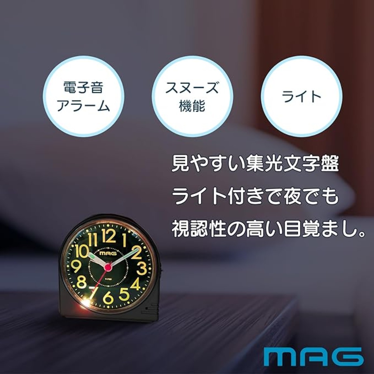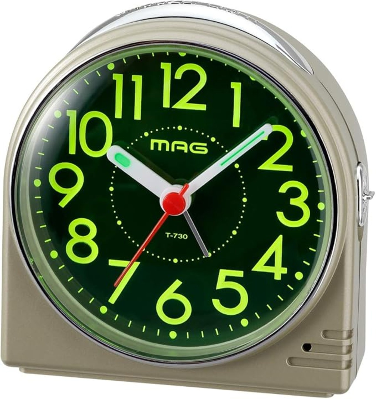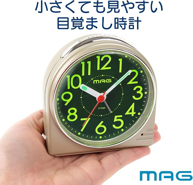 MAG(マグ) 目覚まし時計 置き時計 小型 小さい アナログ 見やすい 静音 連続秒針 電子音 アラーム スヌーズ ライト シャンパンゴールド 蛍 T-730 CGM-Z ノア精密