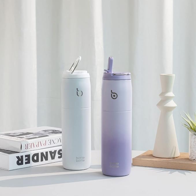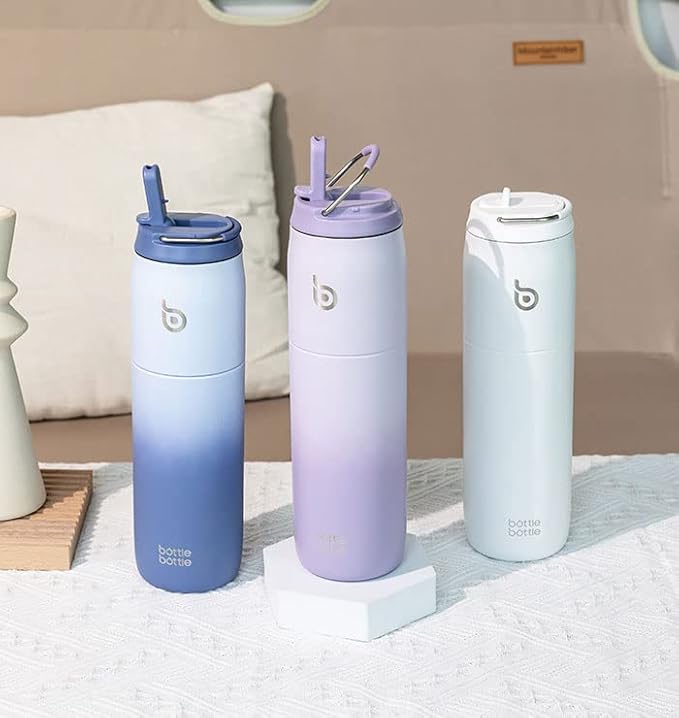 BOTTLE BOTTLE 水筒 1リットル 真空断熱 保温保冷 ステンレスボトル ストロー飲み おしゃれ 持ち手付き 漏れ防止 広口 1000ml スポーツボトル 男の子 女の子 大人 子供 水分補給 パープル