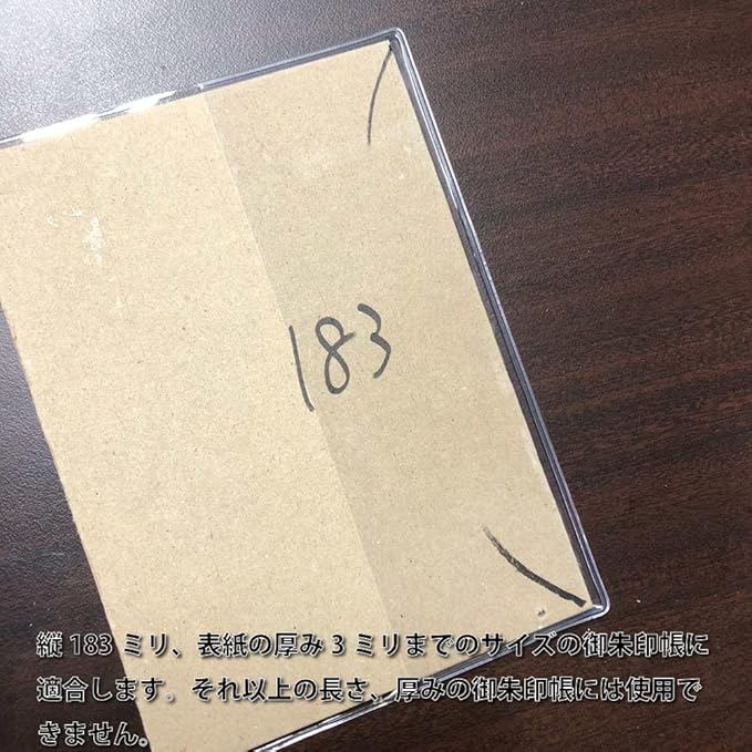 ※近年では御朱印帖HOTによっては数ミリ単位で寸法が違う商品も出てきています。こちらの商品は他社製の御朱印帳も含め縦183ミリ、表紙の厚み3ミリまでの御朱印帖なら使用できる事を確認しております。それ以上のサイズになってくるとカバーの袖に入りませんのでご注意ください。また、当社の大判御朱印帳であれば四万十ひのき御朱印帳以外の全てに入るように設計をしております。