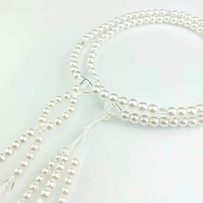 妙蓮花 創価学会用数珠 念珠 SGI数珠 女性用 Mサイズ PCパール アクリル製水晶仕立 2色手毬房 (ホワイトパール)