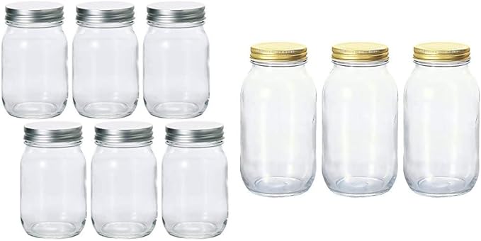 アデリア 保存瓶 ガラス クリア 475ml 銀キャップ保存びん 6個セット 日本製 M6579 & ガラス びん 保存瓶 クリア 925ml ダブルキャップ 3個セット 日本製 M-6657【セット買い】
