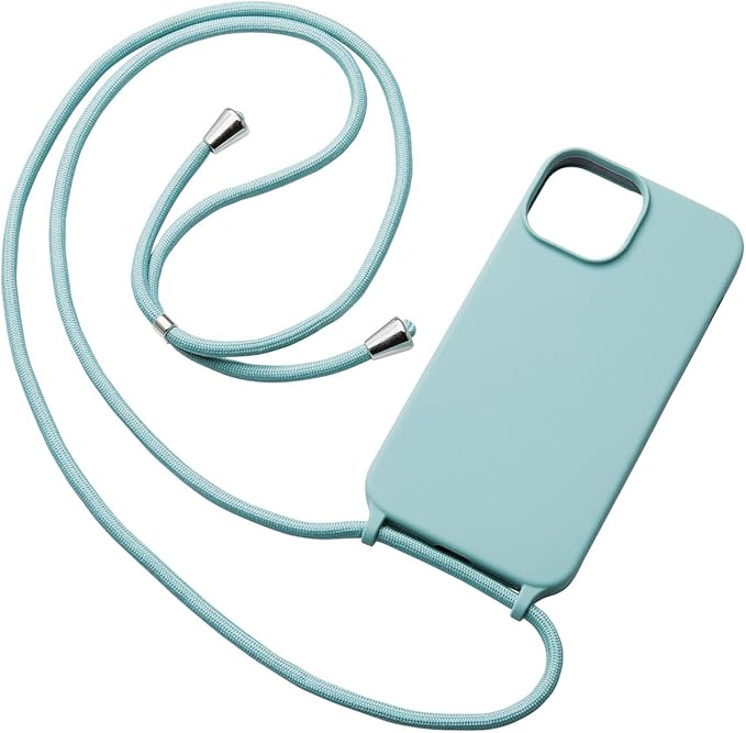 持ち運びに便利なショルダーストラップがついた、やわらかく手触りの良いシリコン素材のiPhone 14/iPhone 13用シリコンケースです。