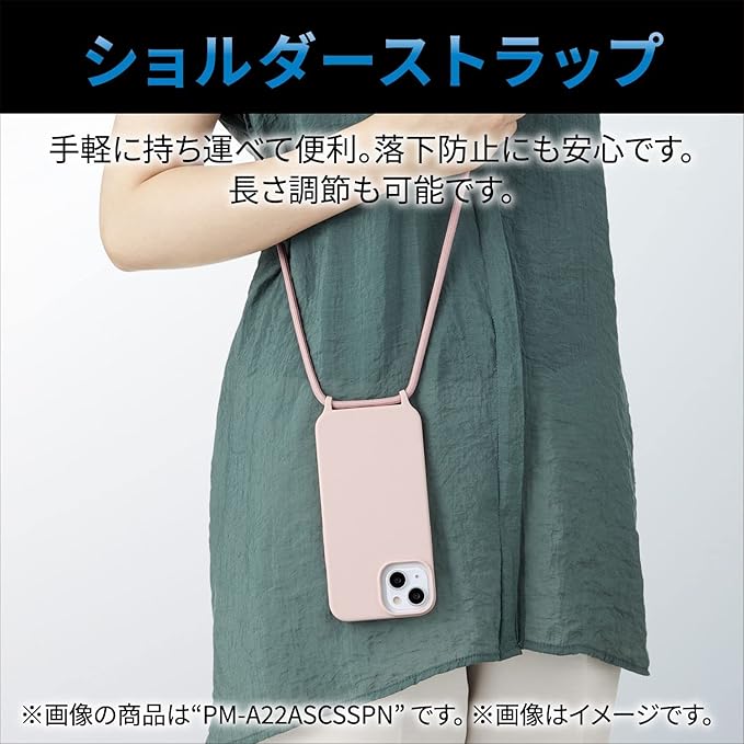 エレコム iPhone 14 / 13 ケース カバー ショルダーストラップ付き 長さ調節可能 シリコン ストラップホール付き グリーン PM-A22ASCSSGN