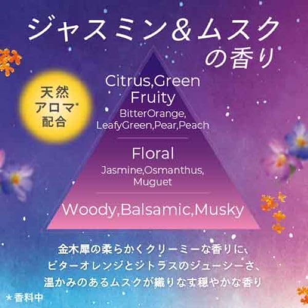 ・天然アロマ配合 ジャスミン&ムスクの上品な香りが長く続く。