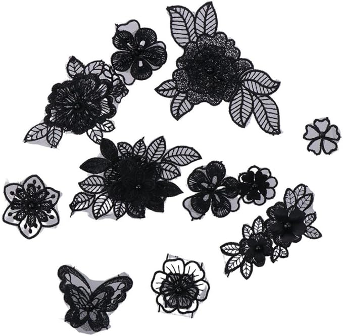 パッケージ内容: 12 スタイルの黒い花の刺繍アップリケが届きます。十分な量とさまざまなスタイルがさまざまなニーズを満たすことができます。