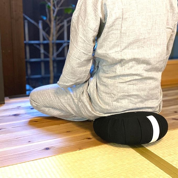 ・寸法:直径30cm 材質:綿布(黒色)、内部:天然パンヤ綿100%、重量:約710グラム ※寸法は成人男性が使用する場合にもっとも適したサイズです。 ・座禅布団は座禅を組むときにお尻の下に入れ、正しい姿勢を保つための座禅専用の座布団です。お寺で使用するものと同等のものです。 ・一般的な座布団とは違い、天然パンヤ綿(カポック)を大量に詰めた硬い座布団です。 ・一つ一つ手作りのため、サイズは多少の誤差があります。あらかじめご了承ください。 ・座布団カバーの白帯部分は名前を記入することもできます。 ・あぐら・坐禅だけでなく正座クッションとしてもご使用いただけます。 【坐蒲お手入れ方法】 ・パンヤ綿がへたってきた際は、天日干ししてください。 ・天日干しをしてもへたりがなおらない場合は、中身のパンヤ綿の補充をしてください。座蒲の白帯部分横より補充が可能です。 ・坐禅をした後は毎回座布の形を整えてください。 ・坐蒲の整え方はペタンコになった坐蒲の側面を床面に押し当て回転させながら整えます。 ・汚れた際は固く絞った布巾でふき取りをしてください。 【注意事項】 ・洗濯機での洗濯はお控えください。 ・マインドフルネス、 瞑想用クッションにも使用できます。正座クッション(正座椅子)としても使用でき、足腰が弱ったお年寄りへのプレゼントにも喜ばれております。