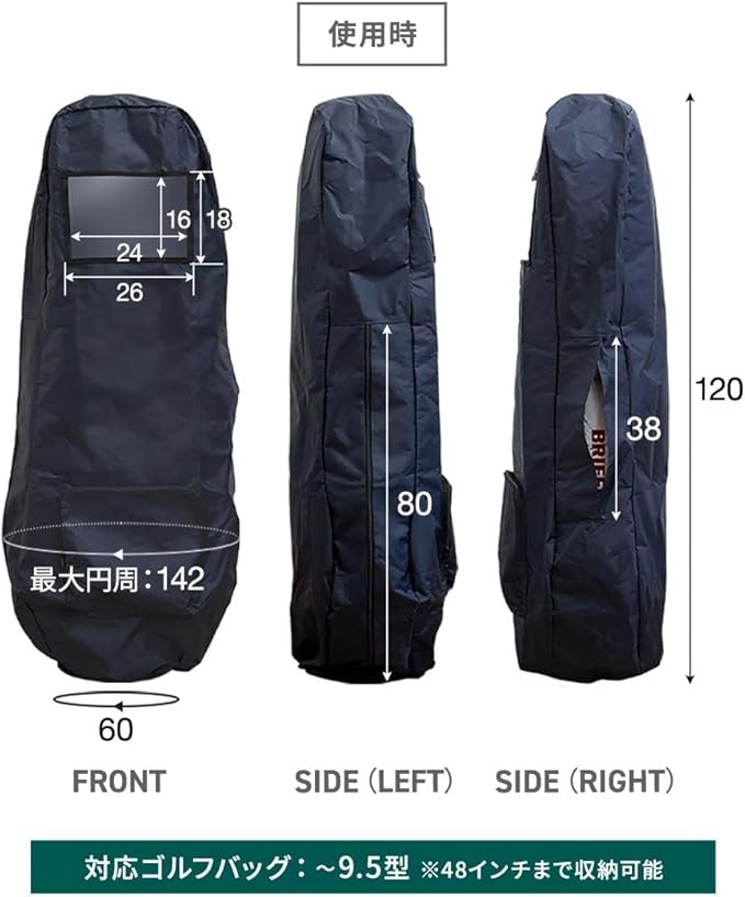 ✅【ゴルフ便や移動時のゴルフクラブ・バッグの破損・汚損対策に】ゴルフ旅行などでの輸送や移動時に、大切なゴルフバッグを破損や傷付きから守るカバーです。頑丈な生地を使用しているので、繰り返し使えてコスパも抜群です。✅【ゆとりのある大きめ設計】標準的な9.5型のゴルフバッグにもすっぽり簡単に被せられるよう、ゆとりあるサイズに設計。取り付け、取り外しがサクッとできます。