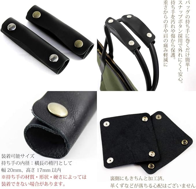 バッグの持ち手に巻くだけ、簡単装着!(裏側にもきちんと加工を施していますので革くずなどが落ちる心配はございません)