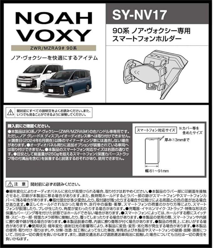 槌屋ヤック(Tsuchiya Yac) トヨタ90系 ノア ヴォクシー専用 スマートフォンホルダー車種専用品 ブラック SY-NV17