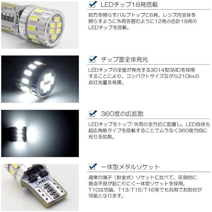 バルブ形状:T10/T13/T15/T16兼用