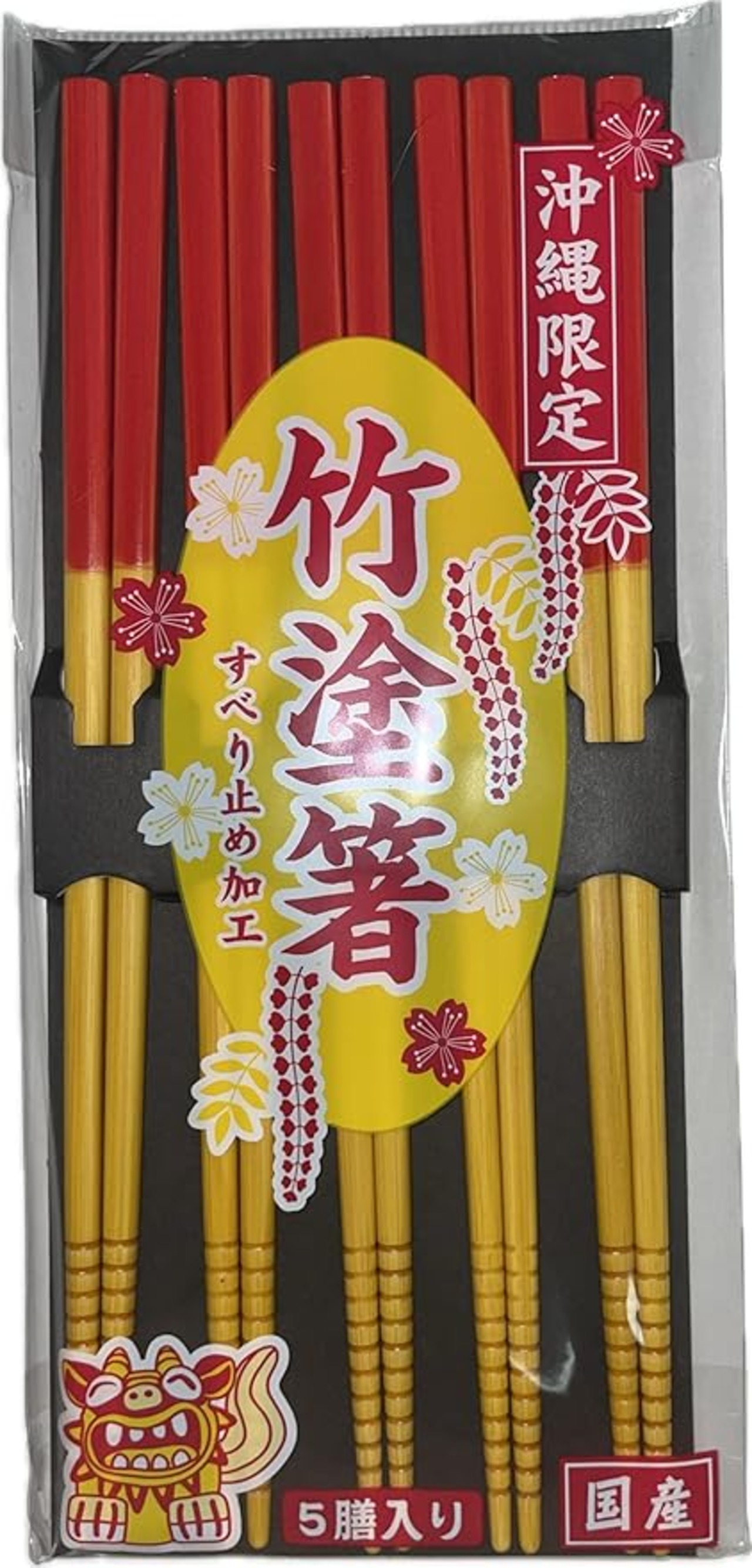 イシダ (Ishida) 竹塗箸 5膳入り 1袋 すべり止め加工あり 沖縄限定品 国内製造