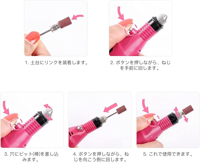 ジェルを削る際、回転数を上げ過ぎたり強く当てると、摩擦熱で熱さや痛みを感じる場合があります。ストーンやメタルパーツ等は熱を伝えやすいのでご注意ください。