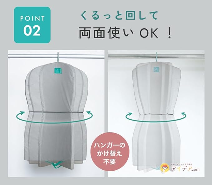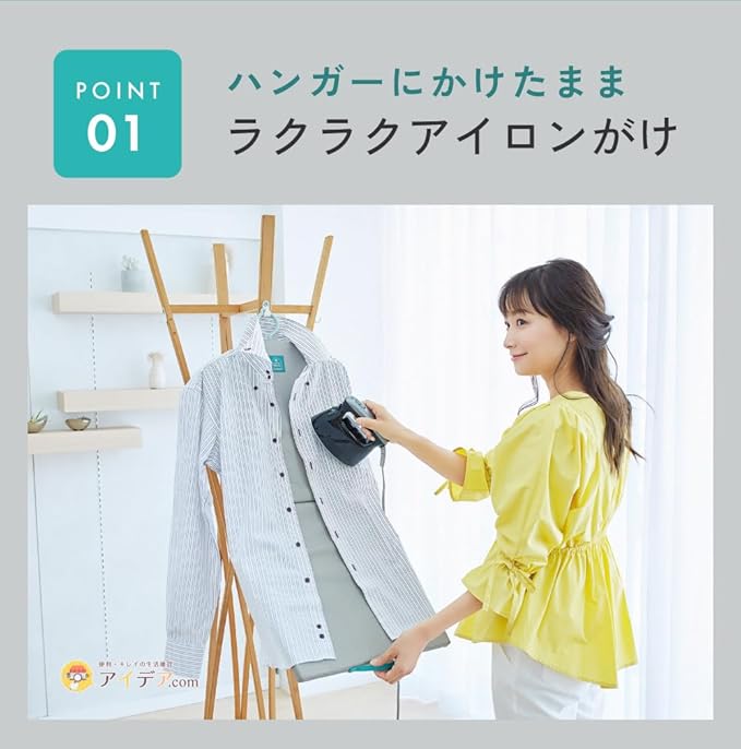 くるっと回して両面づかいok。ハンガーに掛けたままらくらくアイロンがけ。 スチームアイロン専用。 ファッションスタイリスト 橋本春奈 監修 アイロン台としても使える2WAY仕様。 適度なクッション性で使い心地◎下部持ち手付きで、裾までキチンと当てられる設計。 くるっと回して両面使えるからハンガーのかけ替え不要。折りたためてコンパクト。 裾にアイロン台としても。