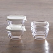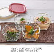 オーブン調理もできる耐熱ガラス製角型保存容器。(オーブン使用時はフタを外す)