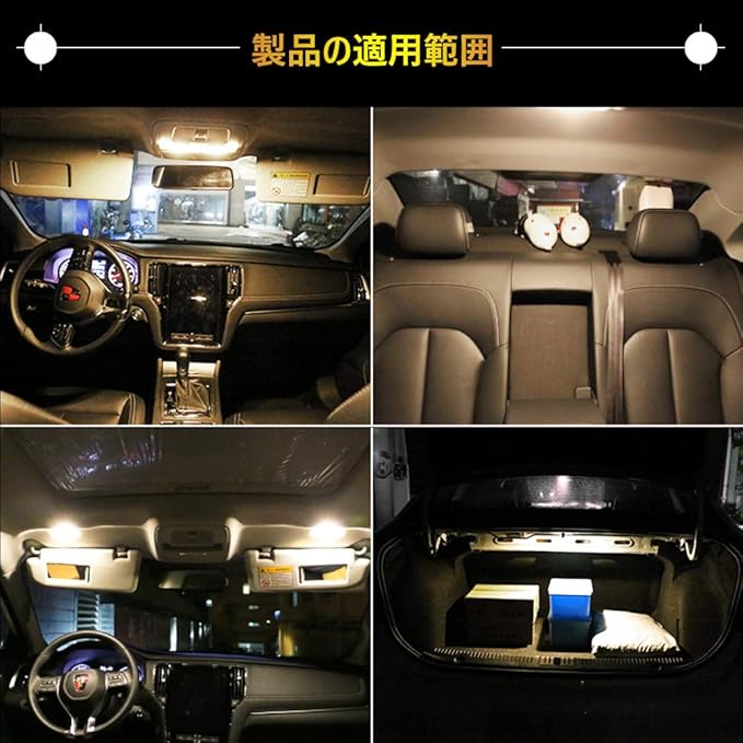 【適用範囲】T10 31mm ソケットであれば、ルームランプ、トランク灯、マップランプ、ナンバー灯、ライセンスランプ、カーテシランプなども使えます。