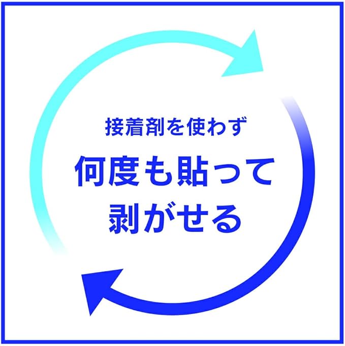 接着剤を使わず、貼り直し可能 接着剤を使わない自己吸着タイプのため、剥がした後に接着剤が残ることがありません。また、貼り直しが可能となっています。