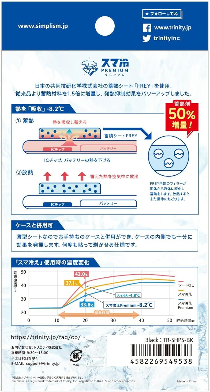 simplism シンプリズム スマ冷え Premium 貼って剥がせるスマートフォン冷却シート 蓄熱1.5倍 ブラック TR-SHPS-BK