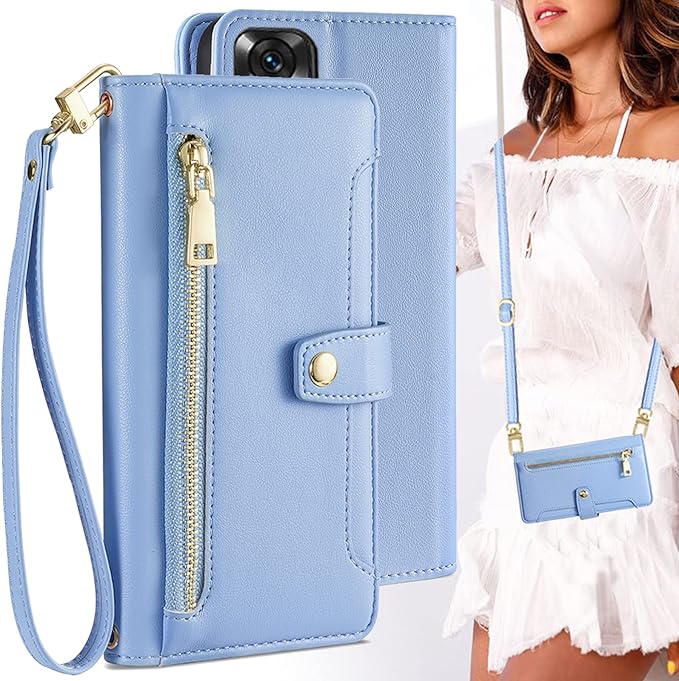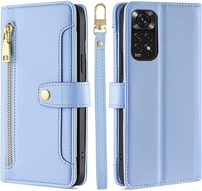 Xiaomi Redmi Note 11 pro 5G ケース 手帳型 ショルダー 【 ストラップ 長+短 2本】 redminote11pro ショルダーケース カバー レッドミ ノート11 プロ 手帳 スマホケース 適用 case 【BonwFzin】 ストラップホール付き カード収納 バッグ マグネット スナップ 肩がけ 首掛け 斜め掛け ファスナー 耐衝撃 スタンド 浅い藍 ライトブルー