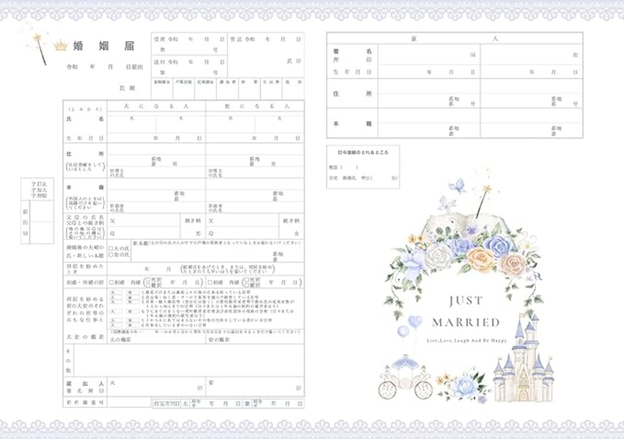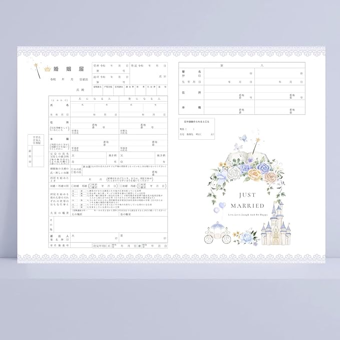 日本全国すべての市区町村役場に対して有効に提出できる婚姻届です。 3枚1セット(提出用・保存用・予備用)となっており、提出しても書き損じても、手元に残しておけます。 婚姻届(A3) 3枚を1setにしてお届けします ※A3を半分に折ってA4サイズで発送します ※上質紙に印刷しており程よい厚みがございます※経年劣化がしにくいレザープリント印刷※他にも多数の可愛い婚姻届種類を出品中♪ストア出品商品一覧からご覧ください