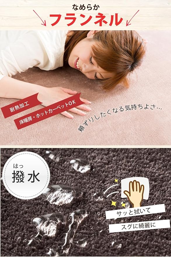 【 安全安心 カーペット 】防ダニ・抗菌・防臭仕様。滑り止めもついてずれにくい ラグ です。フローリング や 畳 など場所を選ばずに使用できます。【 洗える 】毛足は適度な長さなので 掃除 や 洗濯 も簡単です。【 オールシーズン快適 】きめ細かい フランネル 生地ですので 夏 も 冬 も快適に使用できます。ホットカーペット も対応しています。
