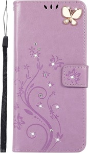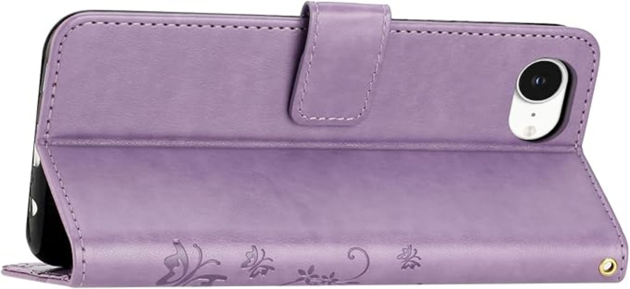 For iPhone 16e 専用ケース 手帳型 純色 可愛い花柄 アイフォン16e ケースおしゃれ 横開き ストラップ付き カードポケット付き オシャレ蝶柄 スタンド耐衝撃マグネット対応 装着やすい (2-キラキラパープル, iPhone 16e)