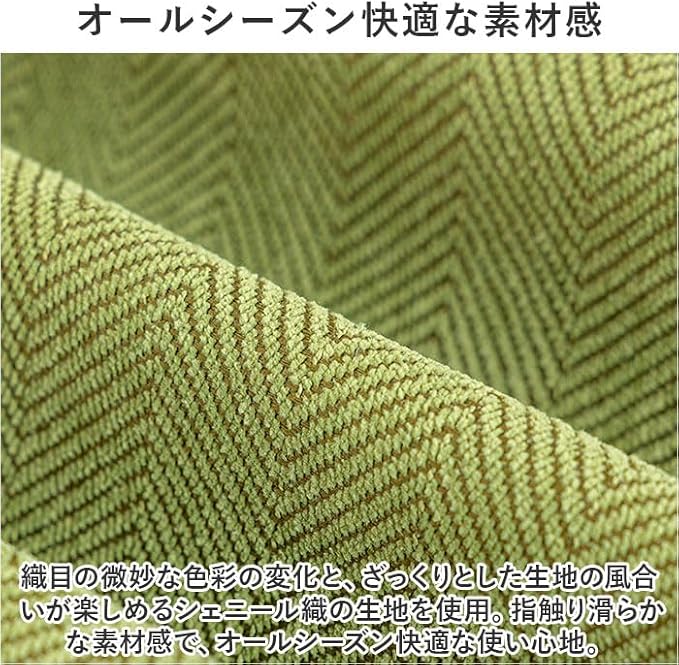 織目の微妙な色彩の変化と、ざっくりとした生地の風合いが楽しめるシェニール織の生地を使用。指触り滑らかな素材感で、オールシーズン快適な使い心地。