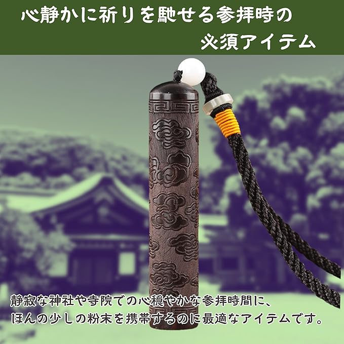 [HYmish]塗香入れ 薬さじ付き 直径1.8cm 塗香 薬さじ付き コンパクトサイズ 参拝 黒檀 ストラップ付き 荷塘月色