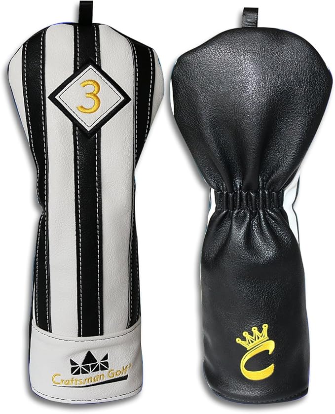 CRAFTSMAN(クラフトマン) ゴルフウッドカバー クラブヘッドカバー 4個セット(1.3.5.UT) ドライバー用・フェアウェイウッド用・ユーティリティー用(番号タグ付き) 着脱スムーズ メンズ たて縞黒白 イタリア風 ユベントスファン向け