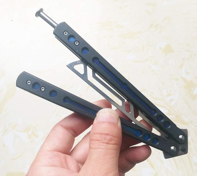 折りたたみ戦術トレーナーバタフライ練習ツールG10ハンドルベアリングメタルスチール鈍いブレードでスムーズな安全プレイ (黒)