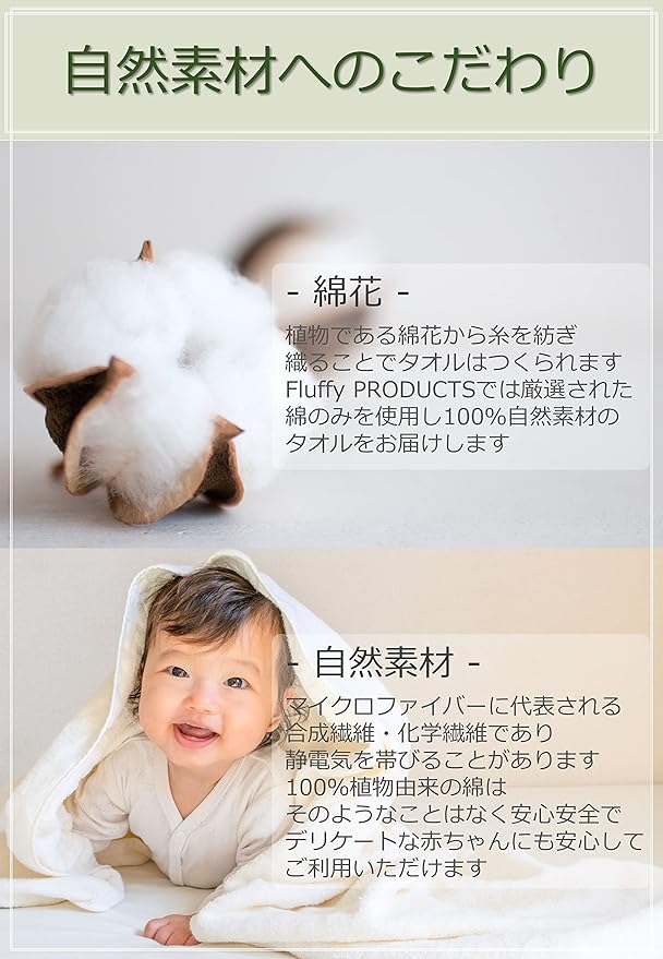 【綿100%へのこだわり】タオルを選ぶなら、自然素材である綿/コットン。FluffyPRODUCTSのタオルがリピートされる理由・・・それは自然素材へのこだわりにあります。