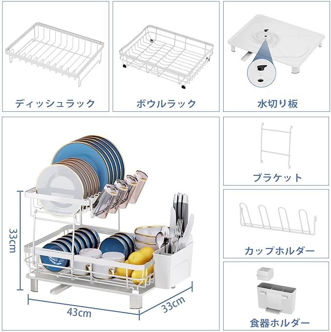【多機能食器 水切り】様々なサイズの食器が収納でき、キッチンのレイアウトに合わせて設置できる多機能な水切りラックです。ご家族やお友達へのプレゼントにも最適です。新築祝い、感謝祭、クリスマス、新年の贈り物など、ご自宅の食器乾燥ラックやさまざまなギフトのアイデアに最適です。