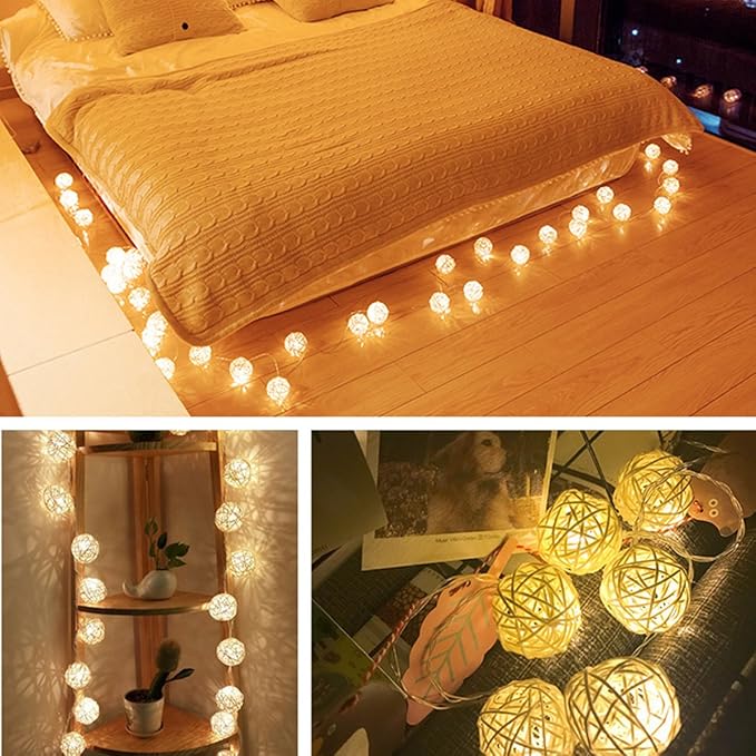 幻想的な雰囲気:ファッションなデザインで、環境に友好、頑丈なラタンボールを採用し、綺麗で、破れにくいです。ウォームホワイトライトはロマンチックな雰囲気を作て、大人気がある飾りライトです。