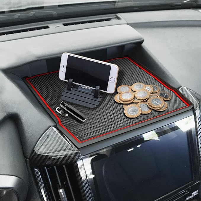 マットを置くだけで、滑らず!!スマホを横向きに置いて滑り止めに置けば、スマホが滑らず動画やナビを見ることが出来ます。サングラス、眼鏡など小物置きになります。 とても便利なアイテムです。