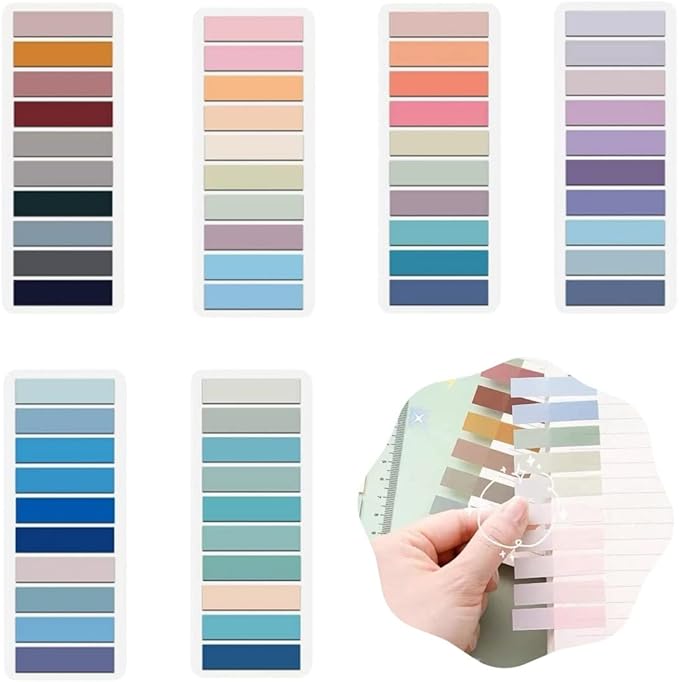 可愛い 付箋 透明 混色 細い ふせん フィルム 6本セット 見出し透明ふせん インデックス付箋 1200枚入り リングノートに取付可能 手帳用に