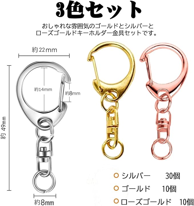【アクセサリーパーツ 幅広い用途】 手の込んだ小物はこのキーホルダー 金具と合わせてバッグ飾りやきれいなキーホルダーに作成できます。シンプルで高級感も溢れ、かわいいハンドメイドプレゼントの作りに適用します。お誕生日、クリスマス、お祝い事、バレンタインデー、母の日、パーティー、結婚式、お出かけ、旅行などのシーンで大活躍します。手芸用品の作りだけでなく、日常に鍵などの管理と分類するのにも適用します。