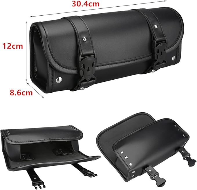 LIKENNY バイク ミニタイプ ツールバッグ 汎用 ツーリング スタッズ付き PUレザー 収納バッグ 小物入れ バイク用 ツールバッグ 取付簡単 防水