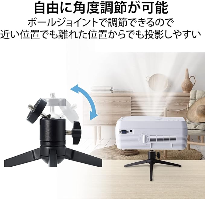 ボールジョイントで自由に角度調節が可能。お好みの角度で投影ができます。