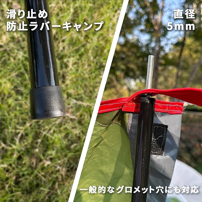 【分離式&初心者も簡単に設営可能】差し込むだけでストッパーによって連結部分がしっかり固定されます。抜き出したり、差し込んだり、組立や撤収を簡単に行え、初心者も簡単に設営可能です。