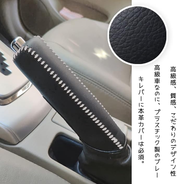 限定商品 本革 サイドブレーキ カバー 汎用 レザーカバー レザー 保護 汚れ防止 上品 高級 取り付け簡単 本皮レザー製 パーキングブレーキ 保護 グレーの白