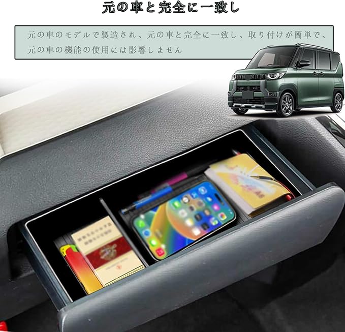 FOR新型 デリカミニ/eKワゴン/eKクロス EV/eKスペース/デイズ/ルークス TPE材質 デリカミニ カスタム パーツ 車のグローブボックス収納ボックスコンソール収納トレイ簡単にインストール デリカミニ カスタムパーツ
