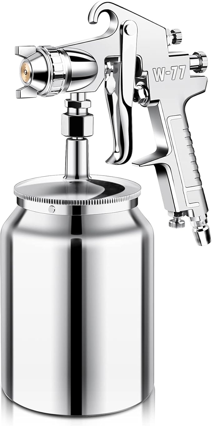 通用 スプレーガン 吸上式 口径2.5mm カップ容量1000cc DIY 車 バイク 木工 金属 壁塗装 ペイントスプレー シルバー