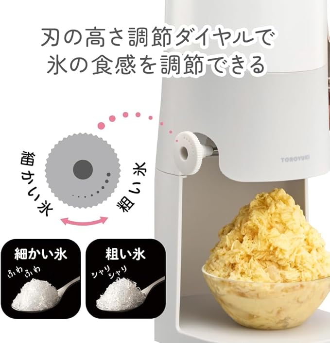 刃の高さ調節ダイヤルで細かい氷から粗い氷まで好きな氷の食感に調節できます。